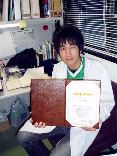 本人のコメント 「これもひとえにご指導いただいた先生、支えてくれた研究室のみんなのお陰です(笑)」