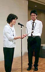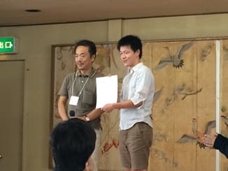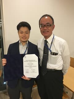 受賞後の様子(左:副会長・伊藤先生(阪大)、右:浅谷君)